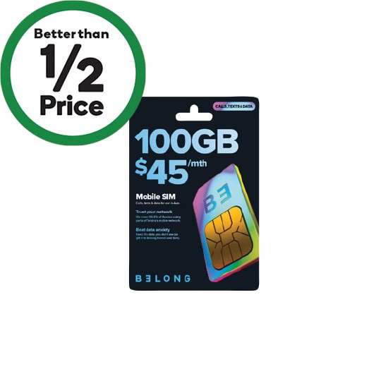 ‡For use in Australia. Unlimited calls and texts to standard landline and mobile numbers. Limit: Total of 3 Belong SIMs per customer. 4G and 5G download speeds capped at 150 Mbps. For personal use only. Belong $45 Starter Pack offer ends 17/2/26.