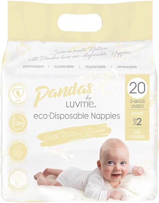 Pandas by Luvme ECO Disposable Nappies- S (3-6kg) 20 Pack (More sizes available)