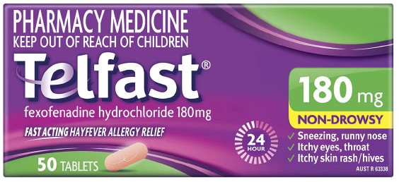 Telfast Fast Acting Hayfever Allergy Relief 180mg 50 Tablets