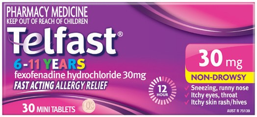 NEW Telfast Hayfever Allergy Relief Kids 30mg 30 Tablets