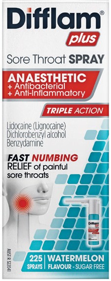 Difflam Plus Sore Throat Spray Anaesthetic Watermelon Flavour 225 Sprays