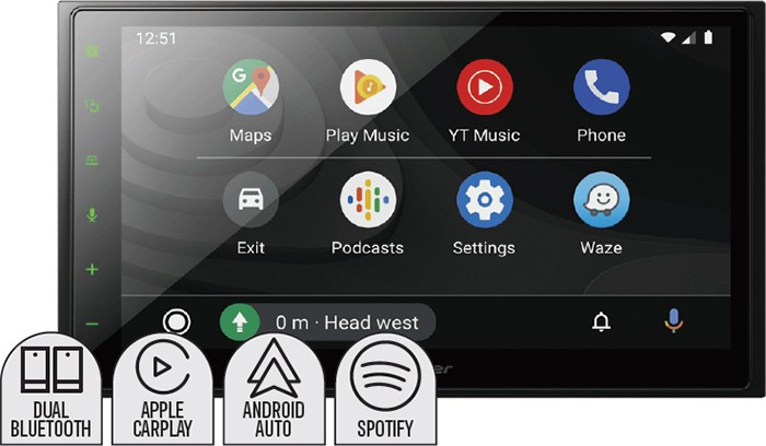 HQ 24-bit capacitive touch screen with Android Auto & Apple Carplay. Dual Bluetooth connection & automatic pairing. Dual camera inputs.