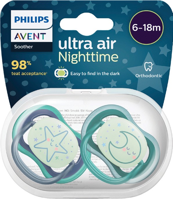 Philips Avent Ultra Air Soother Nighttime Glow 6-18mm 2 Pack