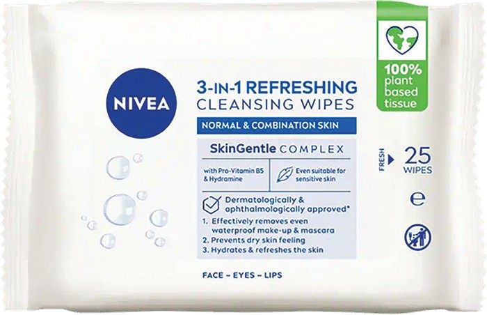 Nivea 3-in-1 Wipes Refreshing 25 Pack
