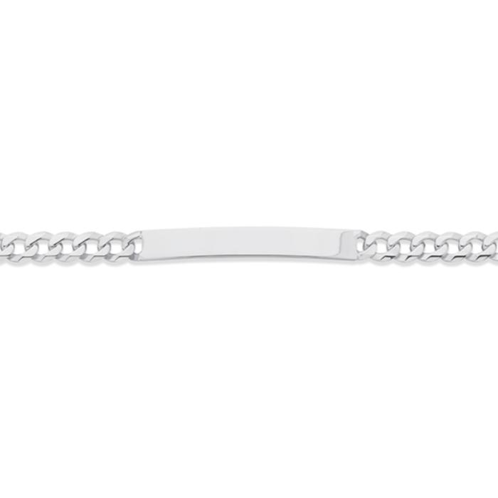 Italian Made Sterling Silver 21cm Solid Bevelled Oval Curb Engravable Identity Bracelet. Approximate Dimensions - 21cm Length, 5.5mm Width.