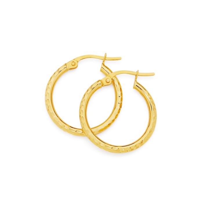 9ct Gold 15mm Diamond-cut Hoop Earrings