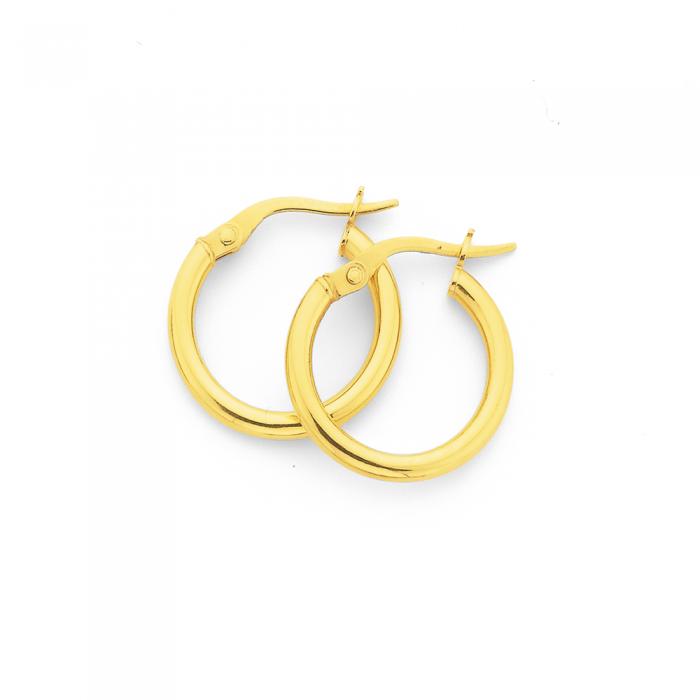 Italian Made 9ct Gold Polished Finish Hoop Earrings - Approximate Dimensions 2mm Width x 12mm Inner Diameter (16mm Outer Diameter).
