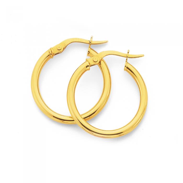 Italian Made 9ct Gold Polished Finish Hoop Earrings - Approximate Dimensions 2mm Width x 15mm Inner Diameter.