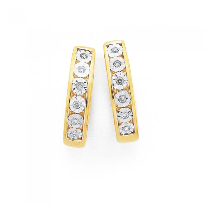 9ct Gold Diamond Miracle Set Huggie Earrings. External Size = Approx. 12mm x 3mm.