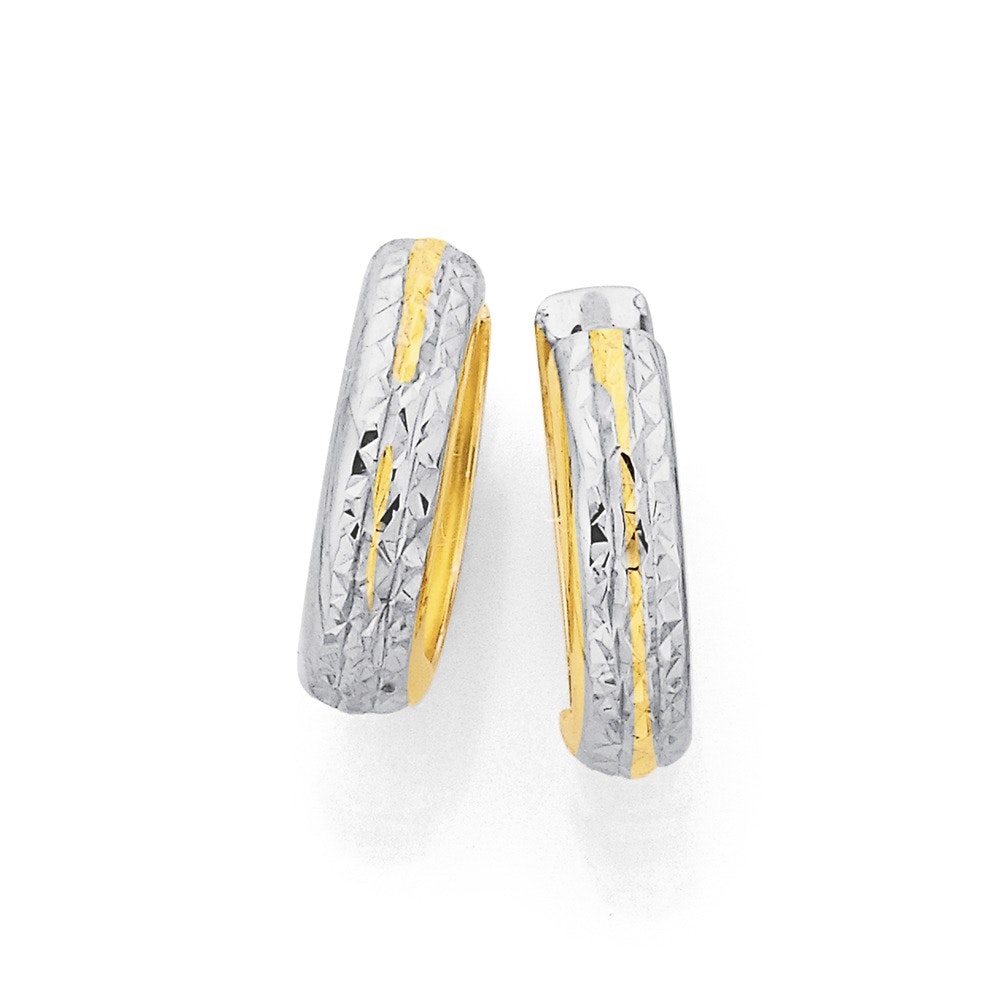 9ct Gold Two Tone Diamond-cut Reversible Huggie Earrings - Approximate Dimensions 4mm Width x 10mm Inner Diameter.
