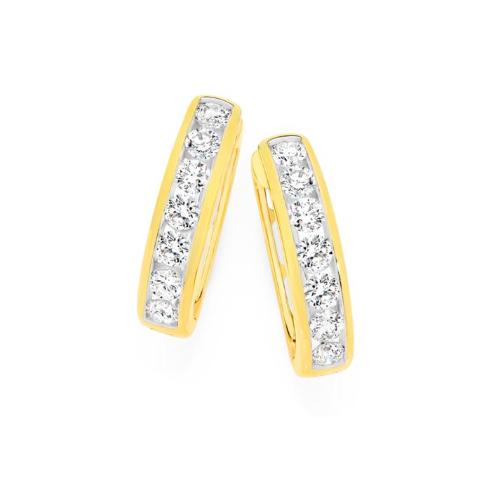 Alora 10ct Gold Lab Grown Diamond Round Brilliant Cut Channel Set Huggie Earrings Total Weight = 1.00ct. External Size = Approx. 12mm x 4mm.