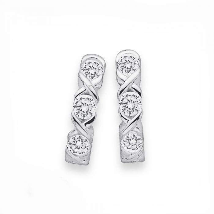 Sterling Silver CZ Hugs & Kisses Huggie Earrings.1601193