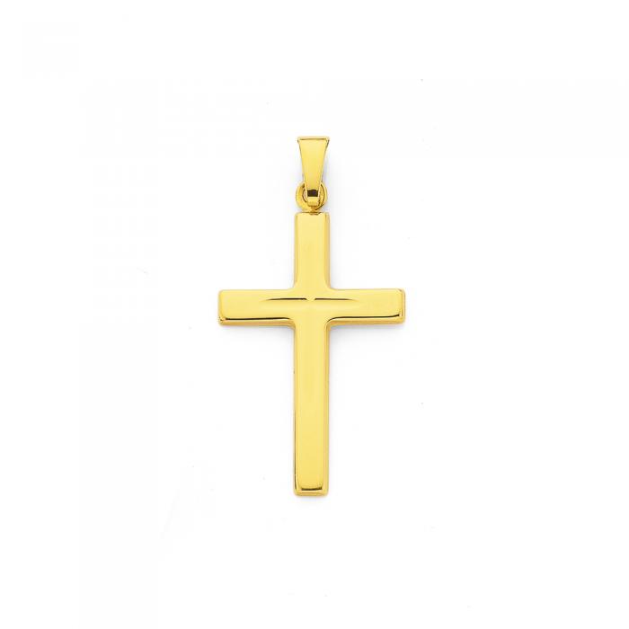 European Designed and Manufactured 9ct Gold Hollow Diamond-cut Centre Cross Pendant - Approximate Dimensions 16mm x 30mm including Bale