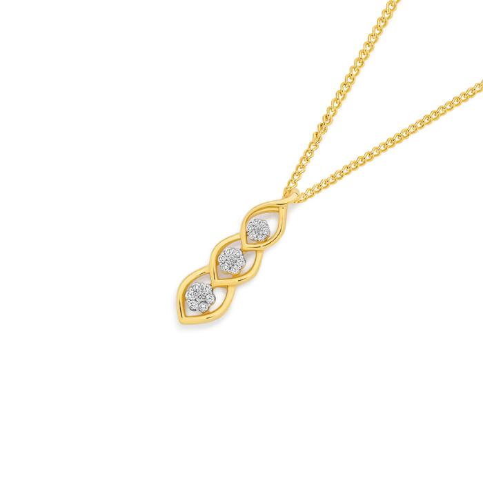 9ct Gold Diamond Trilogy Cluster Teardrop Pendant 8842295