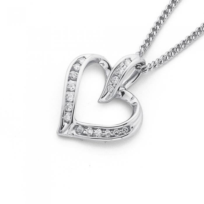 9ct White Gold Diamond Open Heart Slider Pendant Total Diamond Weight = .10ct. Size = Approximately 16mm x 14mm.