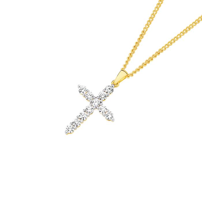 Alora 10ct Gold Lab Grown Diamond Round Brilliant Cut Claw Set Cross Pendant Total Weight = 1.00ct. Size = Approx. 28mm x 16mm Including Bale.