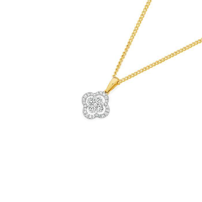 Alora 9ct Gold Lab Grown Diamond Clover Pendant Total Weight = .34ct