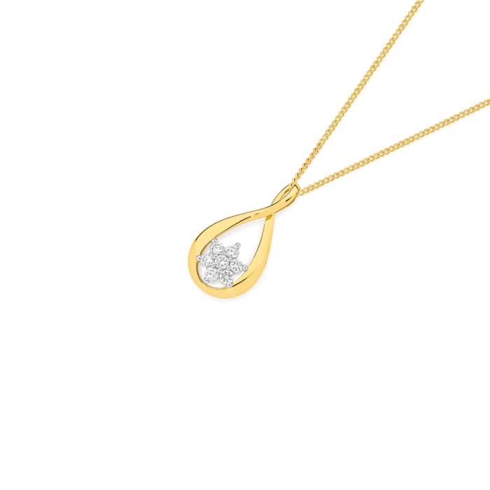 Alora 9ct Gold Lab Grown Diamond Flower Cluster Pear Shape Pendant Total Weight = .35ct