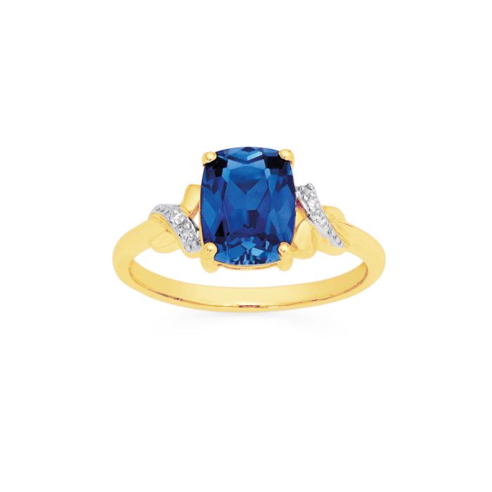 9ct Gold Created Ceylon Sapphire & Diamond Ring