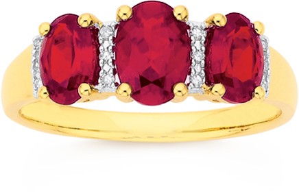 9ct Gold Created Ruby & Diamond Oval Cut Trilogy Dress Ring 7351374