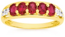 9ct Gold Ring featuring five Oval Cut Created Rubies with diamonds. 7351164