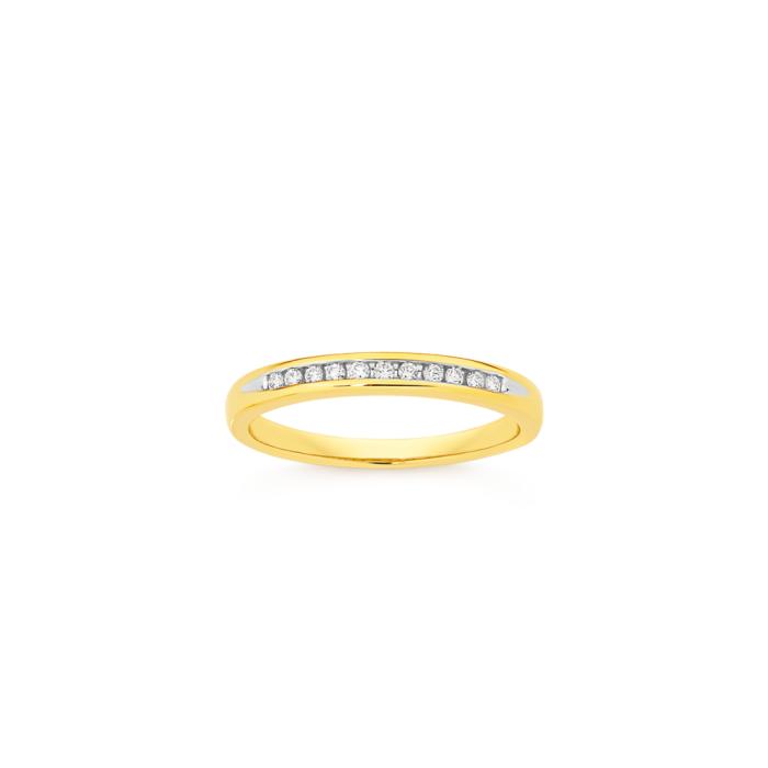9ct Gold Diamond Round Brilliant Cut Channel Set Anniversary Band Total Diamond Weight = .10ct in Size O
