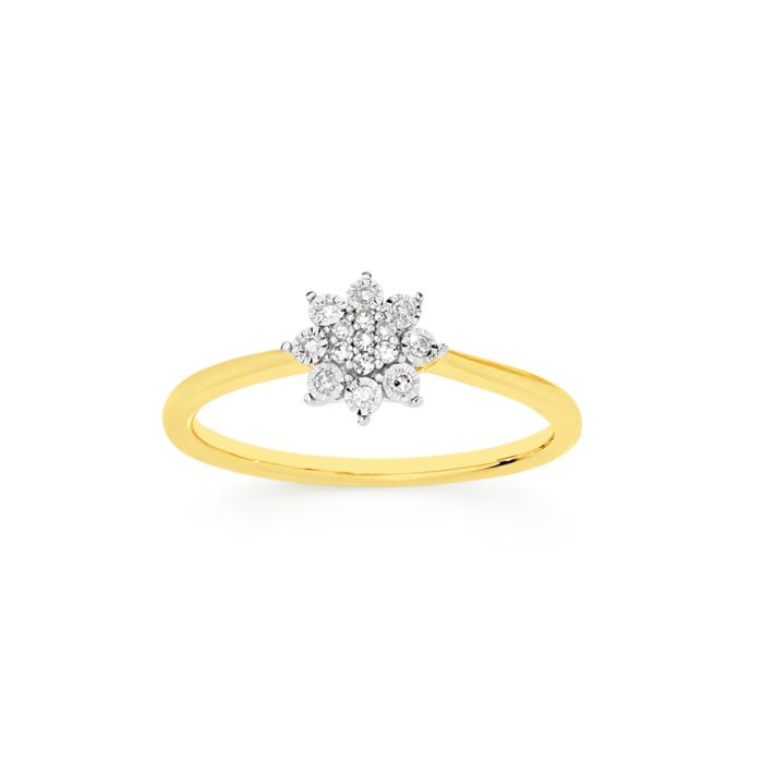 9ct Gold Diamond Miracle Set Flower Cluster Ring8641326