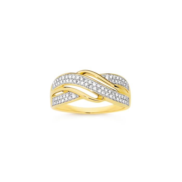 9ct Gold Diamond Swirl Crossover Ring Total Diamond Weight = .20ct 8631961