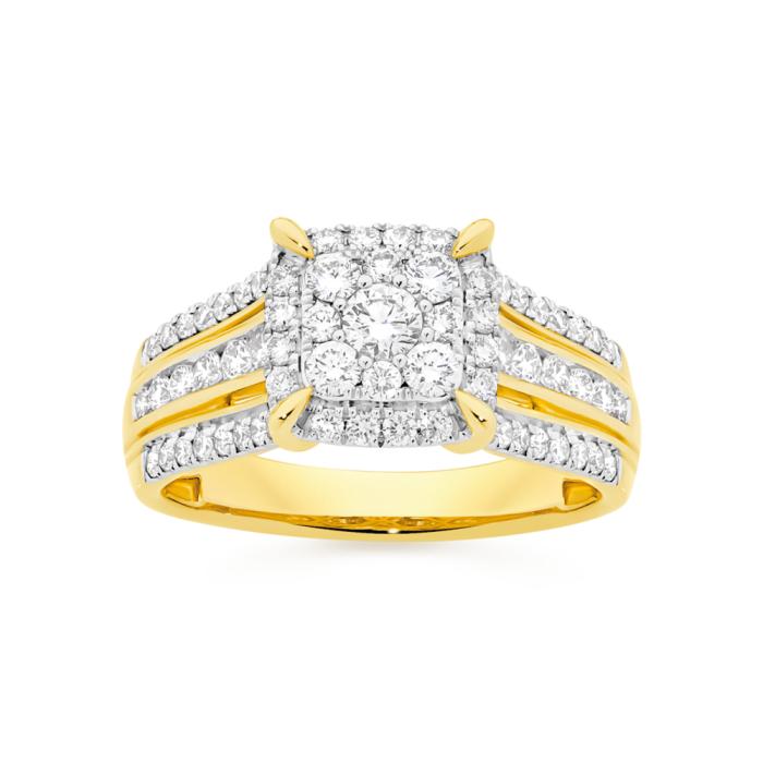 Alora 10ct Gold Lab Grown Diamond Cushion Cluster Three Row Shoulder Set Ring Total Weight = 1.00ct