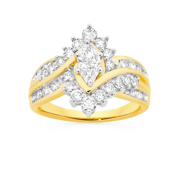 Alora 10ct Gold Lab Grown Diamond Fancy Marquise Cluster Ring Total Weight = 1.34ct
