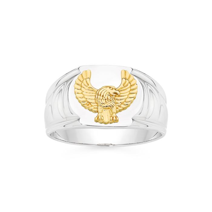 Sterling Silver & 9ct Gold Eagle Signet Ring. Available in Sizes U, W & Y.