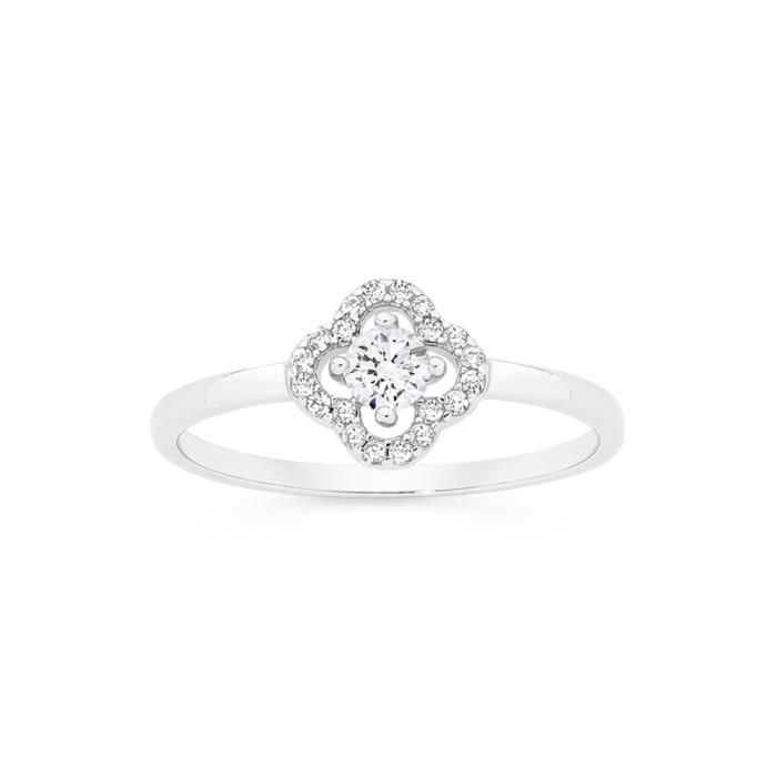 Sterling Silver CZ Clover Halo Ring Size O1801327