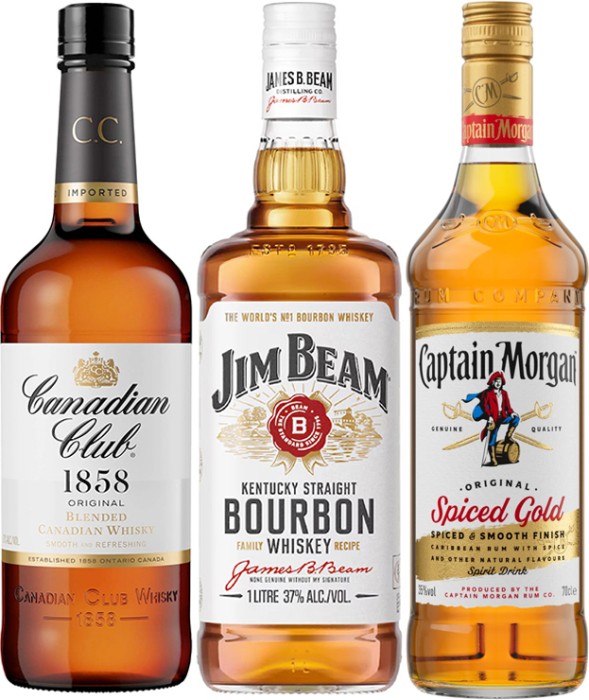 Canadian Club Original Whisky, Jim Beam White Label Bourbon or Captain Morgan Spiced Gold 700mL