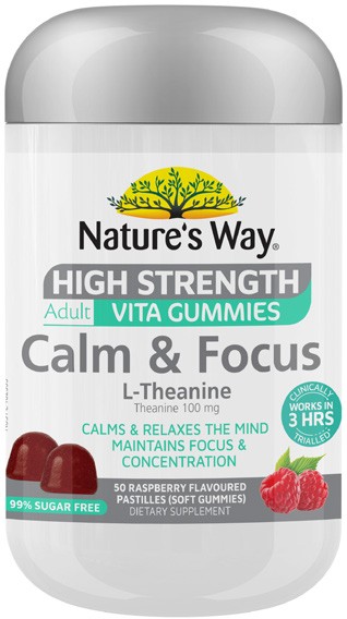NEW Nature's Way High Strength Adult Vita Gummies Calm & Focus L-Theanine 50 Pack