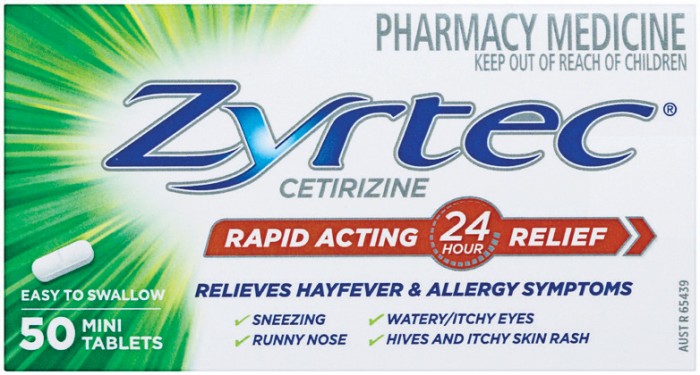 Zyrtec Cetirizine Rapid Acting 24 Hour Relief 50 Mini Tablets