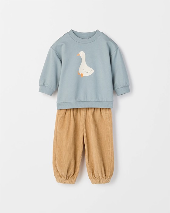 Baby Organic Cotton Fleece Sweater & Soft Cord Pants 2 Piece Set - Goose
