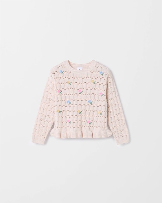 Australian Cotton Pointelle Embroidered Sweater - Cream