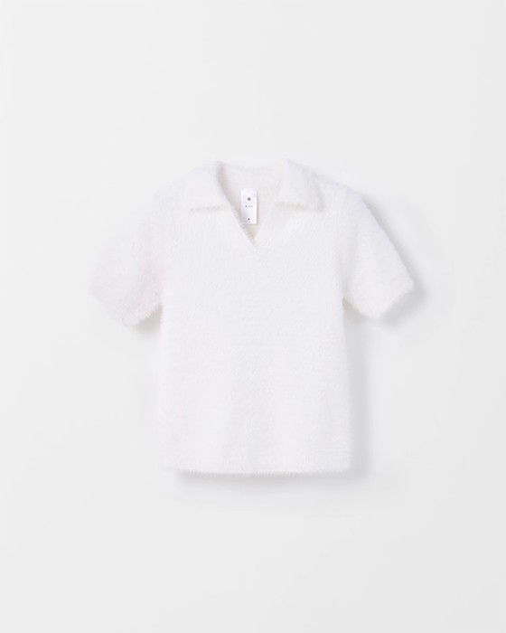 Short Sleeve Eyelash Knit Polo Top - Cream