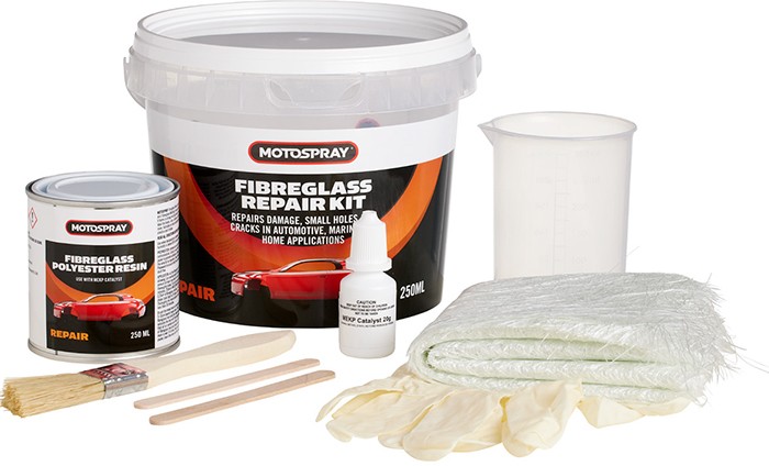Complete kit to repair large holes & cracks for automotive & marine applications. Repairs are waterproof, weather resistant & rotproof suitable for use on fibreglass, metal, timber & masonry.