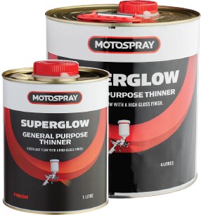 Available in 1l and 4l. Range Includes Superglow, Premium Acrylic, Gunwash & Enamel Thinners.