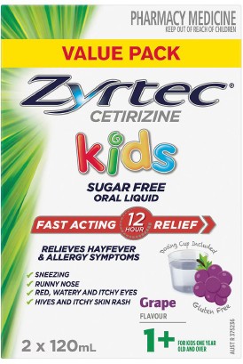 Zyrtec Kids Fast Acting Allergy & Hayfever Relief Grape Flavour Oral Liquid 2 X 120ml