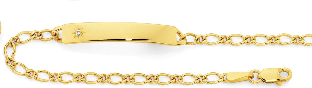 9ct 16cm Solid Figaro 1+1 Diamond I.D. Bracelet
