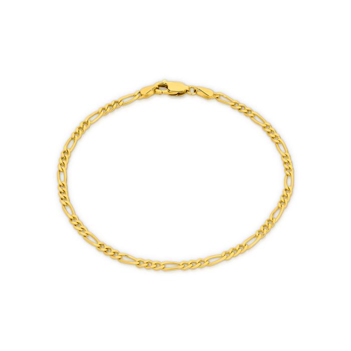 9ct Gold 19cm Solid 3+1 Figaro Bracelet