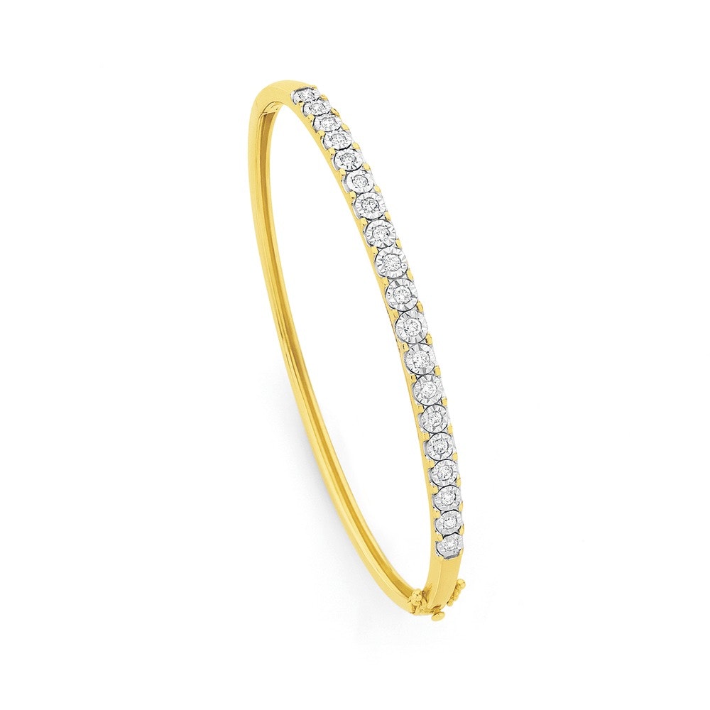 9ct Gold Diamond Miracle Set Bangle Total Diamond Weight = .50ct. Internal Size = Approx. 60mm x 50mm.