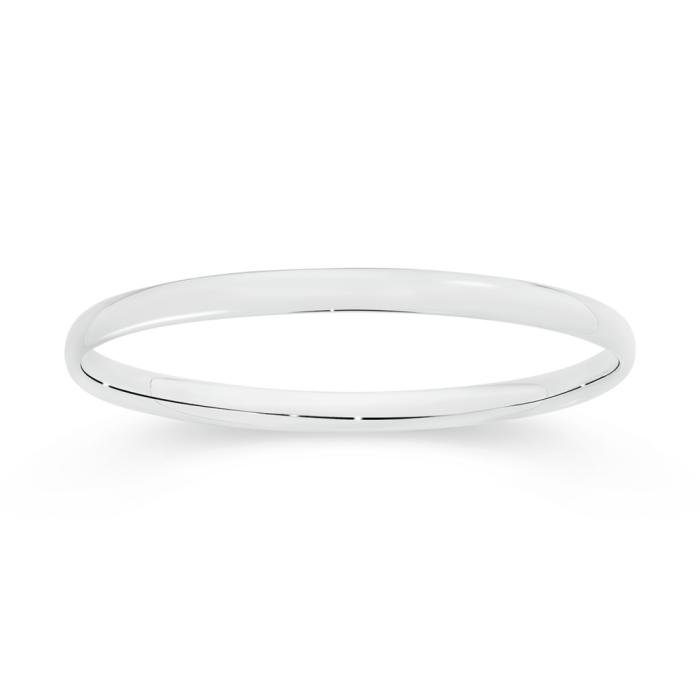 Sterling Silver Polished Finish Half Round Profile Bangle - Approximate Dimensions 4mm Width x 45mm Inner Diameter.