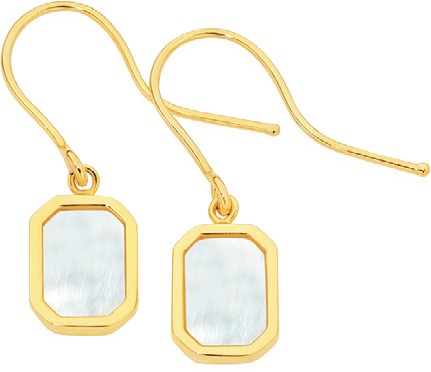 9ct Gold Mother of Pearl Rectangle Hook Drop Earrings