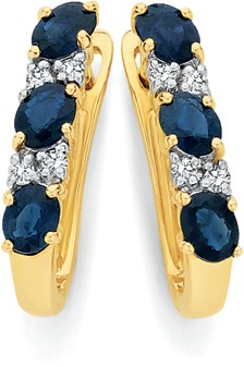 9ct Gold Natural Sapphire & Diamond Hoop Earrings