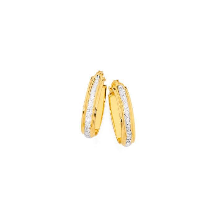 9ct Gold Two Tone 12mm Diamond-Cut Centre Oval Hoop Earrings. Approximate Dimension - 12x18mm Inner Diameter.
