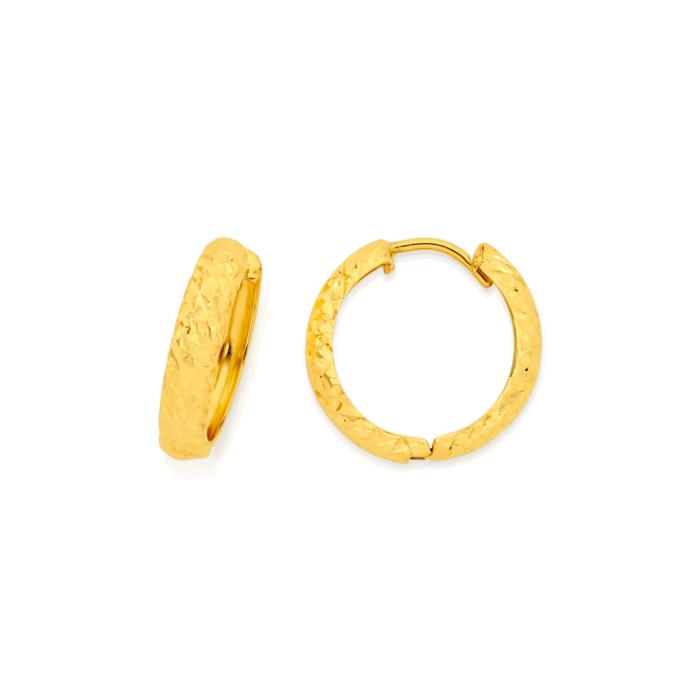 9ct Gold Wide Diamond-Cut Huggie Earrings