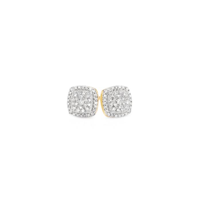 9ct Yellow Gold Diamond Cushion Stud Earrings